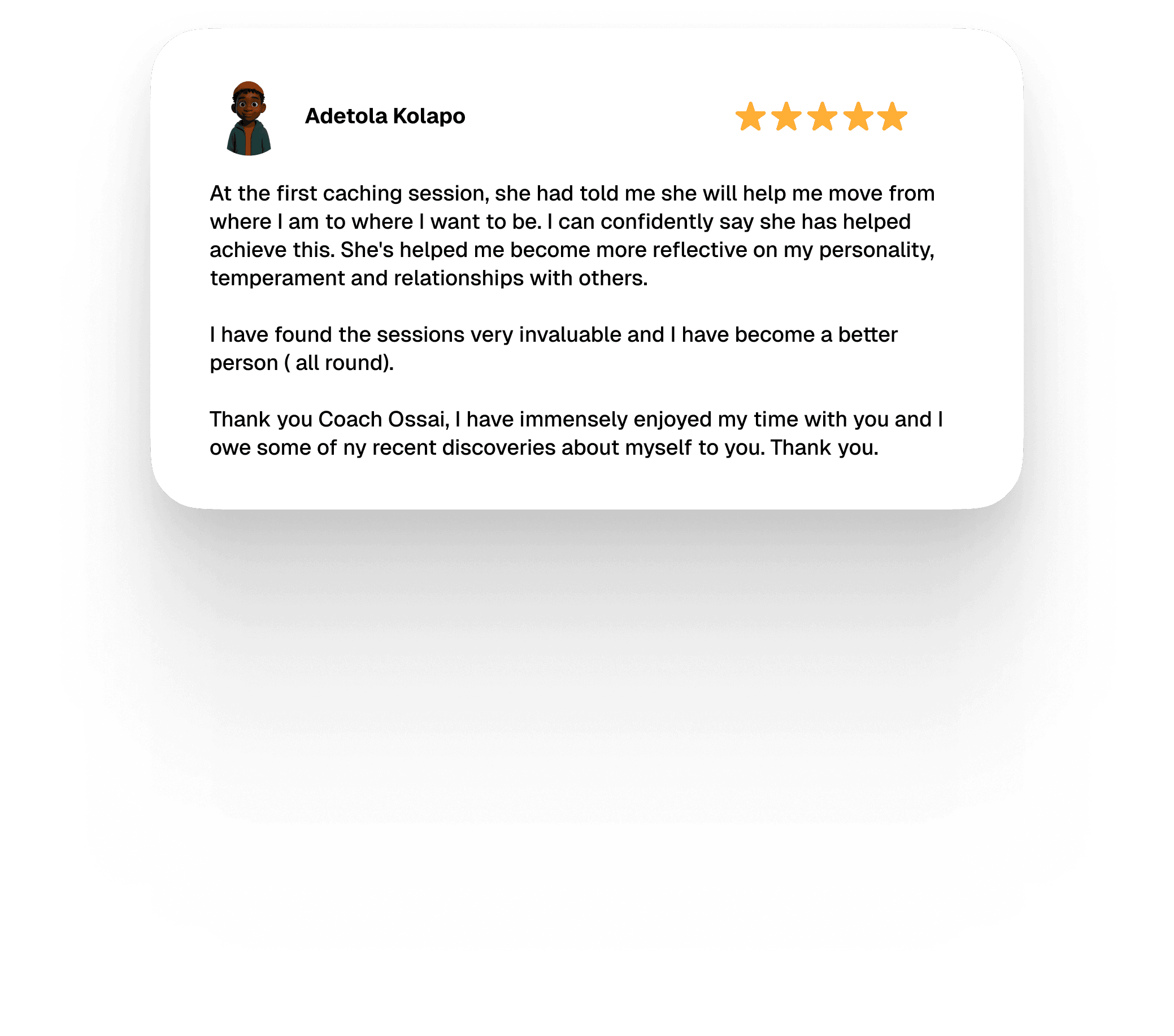 I am endlessly grateful for Coach Gochi's invaluable guidance and remarkable discernment. Her exceptional support and unwavering availability go beyond expectations. Each session leaves me with clarity and purpose. Coach Gochi, your ongoing support is truly appreciated.